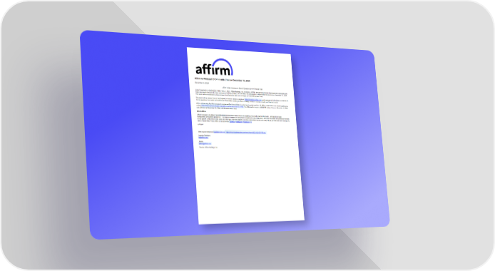 Affirm to Webcast CFO Fireside Chat on December 13, 2024