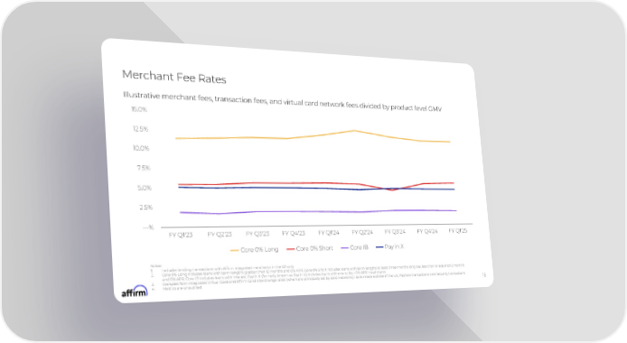 Merchant Fee Rates Illustrative merchant fees, transaction fees, and virtual card network fees divided by product level GMV 15.0% 12.5% 10.0% 7.5% 5.0% 2.5% 4% FY Q1'23 FY Q2'23 FY Q3'23 FY Q4'23 FY Q1'24 FY Q2'24 FY Q3'24 FY Q4'24 FY Q1'25 Core 0% Long Core 0% Short Core IB Pay in X Notes: 1. Includes lending transactions with Affirm integrated merchants in the US only 2. Core 0% Long includes loans with term lengths greater than 12 months and 0% APR; Core 0% Short includes loans with term lengths at least three months long but less than or equal to 12 months and 0% APR; Core IB includes loans with interest; Pay in X (formerly known as Pay in 4) includes loans with one to four 0% APR installments 3. Excludes Non-Integrated Virtual Card and Affirm Card interchange rates (which are principally set by card networks), loans made outside of the US, PayNow transactions and Returnly transactions 15 4. Metrics are unaudited