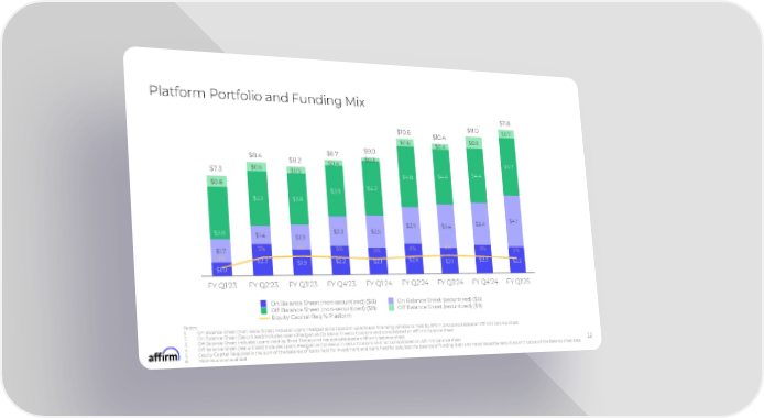 Platform Portfolio and Funding Mix $11.8 $11.0 $0.7 $10.6 $10.4 $0.9 $0.6 $0.4 $9.0 $8.7 $8.4 $0.3 $4.7 $8.2 $0.4 $0.6 $0.5 $4.4 $7.3 $4.4 $4.8 $0.8 $4.2 $3.9 $4.1 $3.8 $4.1 $3.4 $2.9 $3.4 $2.5 $2.3 $3.8 $1.4 $1.9 6% 6% 5% 5% 6% 5% 5% 5% $1.7 2% $2.4 $2.3 $2.3 $2.2 $2.1 $2.2 $2.1 $1.9 $1.0 FY Q1'23 FY Q2'23 FY Q3'23 FY Q4'23 FY Q1'24 FY Q2'24 FY Q3'24 FY Q4'24 FY Q1'25 On Balance Sheet (non-securitized) ($B) On Balance Sheet (securitized) ($B) Off Balance Sheet (non-securitized) ($B) Off Balance Sheet (securitized) ($B) Equity Capital Req % Platform Notes: 1. On Balance Sheet (Non-Securitized) includes Loans Pledged as Collateral in warehouse financing vehicles or held by Affirm and consolidated on Affirm9s balance sheet 2. On Balance Sheet (Securitized) includes Loans Pledged as Collateral in securitizations and consolidated on Affirm9s balance sheet 3. Off Balance Sheet includes Loans Held by Third Parties and not consolidated on Affirm9s balance sheet 4. Off Balance Sheet (Securitized) includes Loans Pledged as Collateral in securitizations and not consolidated on Affirm9s balance sheet 22 5. Equity Capital Required is the sum of the balance of loans held for investment and loans held for sale, less the balance of funding debt and notes issued by securitization trusts as of the balance sheet date 6. Metrics are unaudited