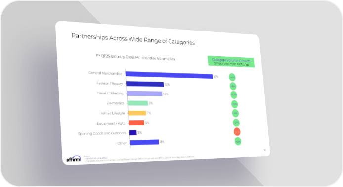Partnerships Across Wide Range of Categories Category Volume Growth FY Q1'25 Industry Gross Merchandise Volume Mix Q1 Year over Year % Change General Merchandise 36% +47% 15% Fashion / Beauty +19% +25% Travel / Ticketing 14% 8% +33% Electronics Home / Lifestyle 7% +11% 6% Equipment / Auto +29% Sporting Goods and Outdoors 3% (5)% 11% Other +55% Notes: 10 1. Metrics are unaudited 2. Excludes volume from transactions facilitated through Affirm virtual card and Affirm Card at non-integrated merchants