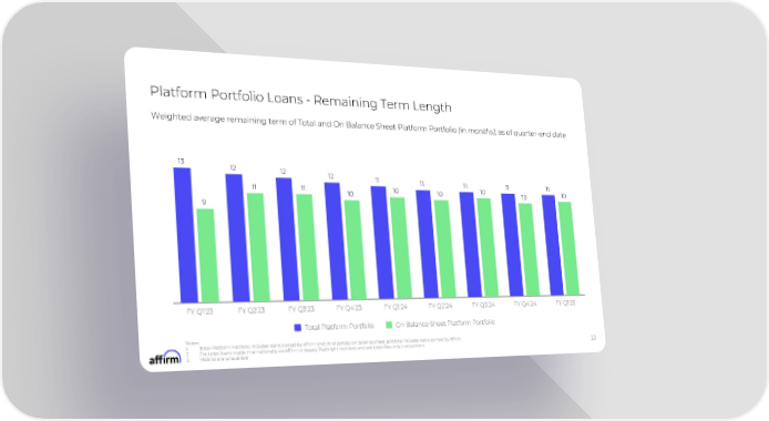 Platform Portfolio Loans - Remaining Term Length Weighted average remaining term of Total and On Balance Sheet Platform Portfolio (in months), as of quarter-end date 13 12 12 12 11 11 11 11 11 11 11 10 10 10 10 10 10 9 FY Q1'23 FY Q2'23 FY Q3'23 FY Q4'23 FY Q1'24 FY Q2'24 FY Q3'24 FY Q4'24 FY Q1'25 Total Platform Portfolio On Balance Sheet Platform Portfolio Notes: 1. Total Platform Portfolio includes loans owned by Affirm and third parties, on balance sheet portfolio includes loans owned by Affirm 23 2. Excludes loans made internationally via Affirm or legacy Paybright business and excludes Returnly transactions 3. Metrics are unaudited