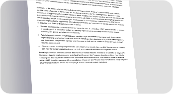 Use of Non-GAAP Financial Measures To supplement the Company's condensed consolidated ûnancial statements, which are prepared and presented in accordance with generally accepted accounting principles in the United States ("GAAP"), the Company presents the following non-GAAP ûnancial measures: transaction costs, transaction costs as a percentage of GMV, revenue less transaction costs, revenue less transaction costs as a percentage of GMV, non-GAAP sales and marketing expense, non-GAAP general and administrative expense, adjusted operating income (loss), adjusted operating margin, total platform portfolio, equity capital required, and equity capital required as a percentage of total platform portfolio. Deûnitions of these non-GAAP ûnancial measures are included under "Key Operating Metrics, Non-GAAP Financial Measures and Supplemental Performance Indicators" above, and reconciliations of these non-GAAP ûnancial measures with the most directly comparable GAAP ûnancial measures are included in the tables below. Summaries of the reasons why the Company believes that the presentation of each of these non-GAAP ûnancial measures provides useful information to the Company and investors are included under "Key Operating Metrics, Non-GAAP Financial Measures and Supplemental Performance Indicators" above. In addition, the Company uses these non-GAAP ûnancial measures in conjunction with ûnancial measures prepared in accordance with GAAP for planning purposes, including the preparation of its annual operating budget, and for evaluating the effectiveness of its business strategy. However, these non-GAAP ûnancial measures are presented for supplemental informational purposes only, and these non-GAAP ûnancial measures have limitations as analytical tools. Some of these limitations are as follows: ● Revenue less transaction costs and revenue less transaction costs as a percentage of GMV are not intended to be measures of operating proût or loss as they exclude key operating expenses such as technology and data analytics, sales and marketing, and general and administrative expenses; ● Adjusted operating income (loss) and adjusted operating margin exclude certain recurring, non-cash charges such as depreciation and amortization, the expense related to warrants and share-based payments granted to enterprise partners, and share-based compensation expense, which have been, and will continue to be for the foreseeable future, signiûcant recurring expenses; and ● Other companies, including companies in the same industry, may calculate these non-GAAP ûnancial measures differently from how the Company calculates them or not at all, which reduces its usefulness as a comparative measure. Accordingly, investors should not consider these non-GAAP ûnancial measures in isolation or as substitutes for analysis of the Company's ûnancial results as reported under GAAP, and these non-GAAP measures should be considered along with other operating and ûnancial performance measures presented in accordance with GAAP. Investors are encouraged to review the related GAAP ûnancial measures and the reconciliations of these non-GAAP ûnancial measures to their most directly comparable GAAP ûnancial measures and not rely on any single ûnancial measure to evaluate the business. Affirm FQ1’25 Shareholder Letter 19